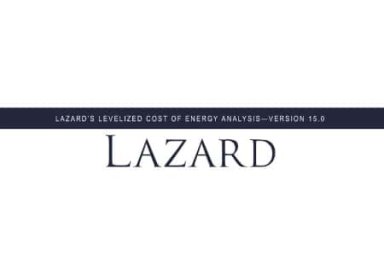Инвестиционный банк Lazard выпустил свой очередной, уже 15-й ежегодный доклад «Анализ приведённой стоимости энергии» (Levelized Cost of Energy Analysis или LCOE 15.0), а также доклады по экономике систем накопления энергии (Levelized Cost of Storage Analysis, LCOS 7.0) и водорода (Levelized Cost of Hydrogen Analysis, LCOH 2.0).