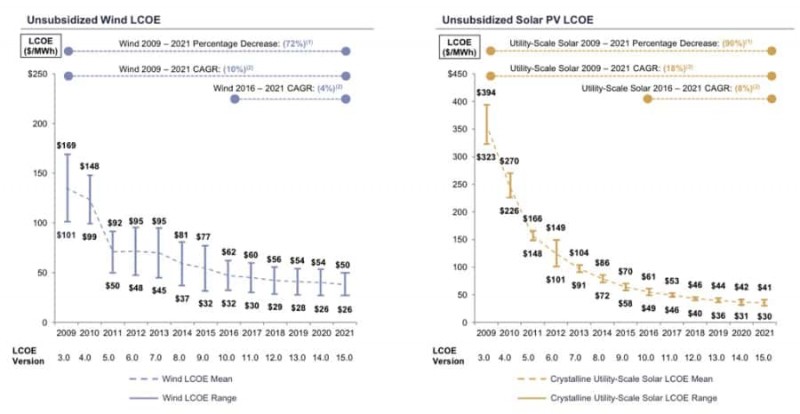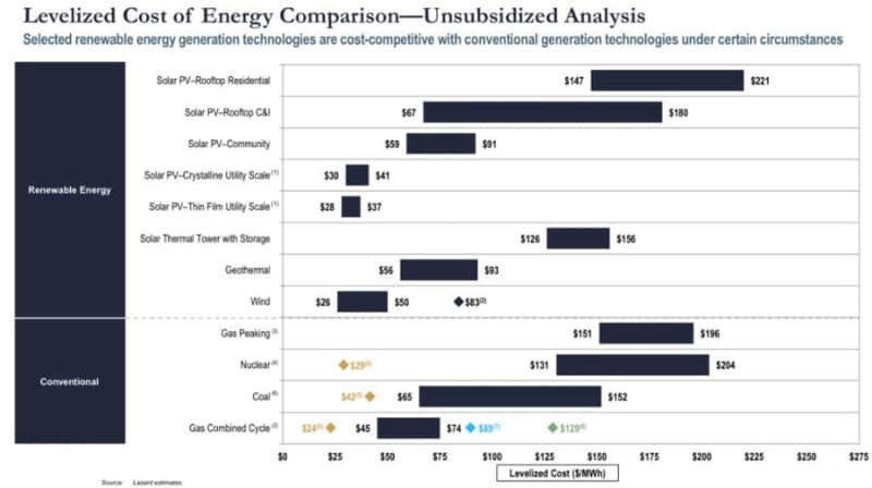Ещё в 2017 году Lazard сделал вывод, что ветровая и солнечная энергетика — самые дешёвые технологии генерации.