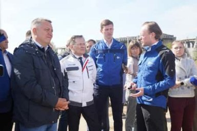 Делегация во главе с Алексеем Лихачевым также посетила площадку Байкальского целлюлозно-бумажного комбината, где продолжаются работы по очистке и понижению уровня надшламовых вод в картах-накопителях полигонов «Солзанский» и «Бабхинский».