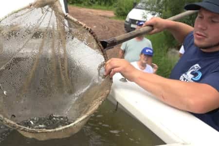 Доставку молоди к месту выпуска без потерь и с максимальным комфортом осуществляет специальный автомобиль с емкостями под воду и аэратором для насыщения воды кислородом.