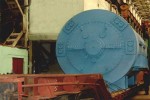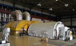 В здании турбины первого энергоблока в настоящее время закрыты горизонтальные разъемы цилиндра высокого давления и всех четырех цилиндров низкого давления. Генераторная часть фундамента нагружена имитирующими вес статора грузами.