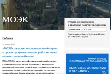 «МОЭК» запустил информационный сервис о сроках профилактических работ на сетях горячего водоснабжения